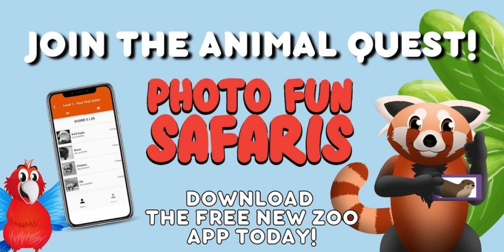 Looking for something “new” to do on your next zoo visit? Download our free Photo Fun Safari app – available now for both iPhone and Android devices – and have fun completing a photo scavenger hunt while learning fun facts about the zoo animals. The app is customized to the NEW Zoo & Adventure Park, featuring photos and facts about our very own animals. Go on a safari to find different zoo critters in different poses – such as swimming, walking, sleeping, and more. Take photos to complete the challenge – it’s fun for kids and adult alike!